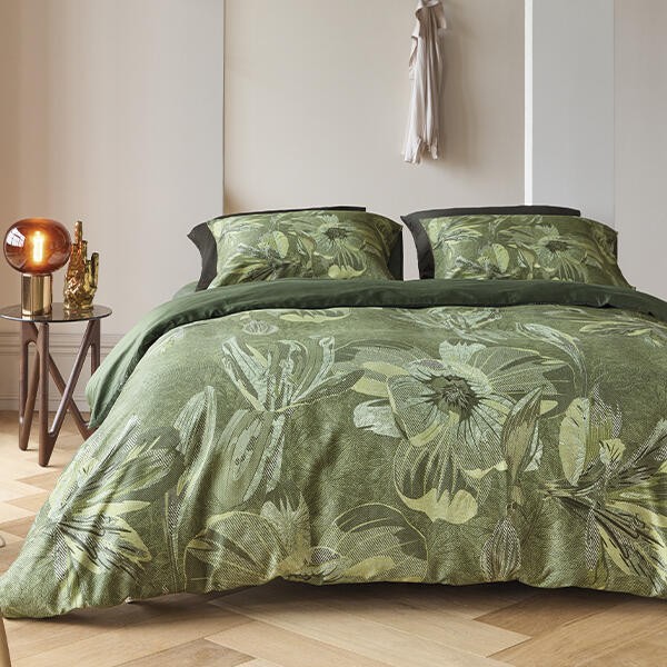 Het ‘Symbiose’ dekbedovertrek van Kardol onderscheidt zich door een verfijnd bloemenmotief in prachtige, groene tinten. De diepe kleuren brengen een vleugje elegantie en luxe in uw slaapkamer. Een ontwerp dat rust én stijl uitstraalt. Uitgevoerd in katoensatijn voor een zachte en aangename nachtrust.