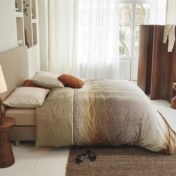 Het ‘Jenn’ dekbedovertrek brengt rust in uw slaapkamer door het verfijnde patroon van kleine stipjes en zachte kleurovergangen. Verkrijgbaar in de natuurlijke tinten naturel en groen. Hierdoor straalt het een tijdloze elegantie uit die zich moeiteloos laat combineren met verschillende interieurs. Uitgevoerd in 100% katoen voor een